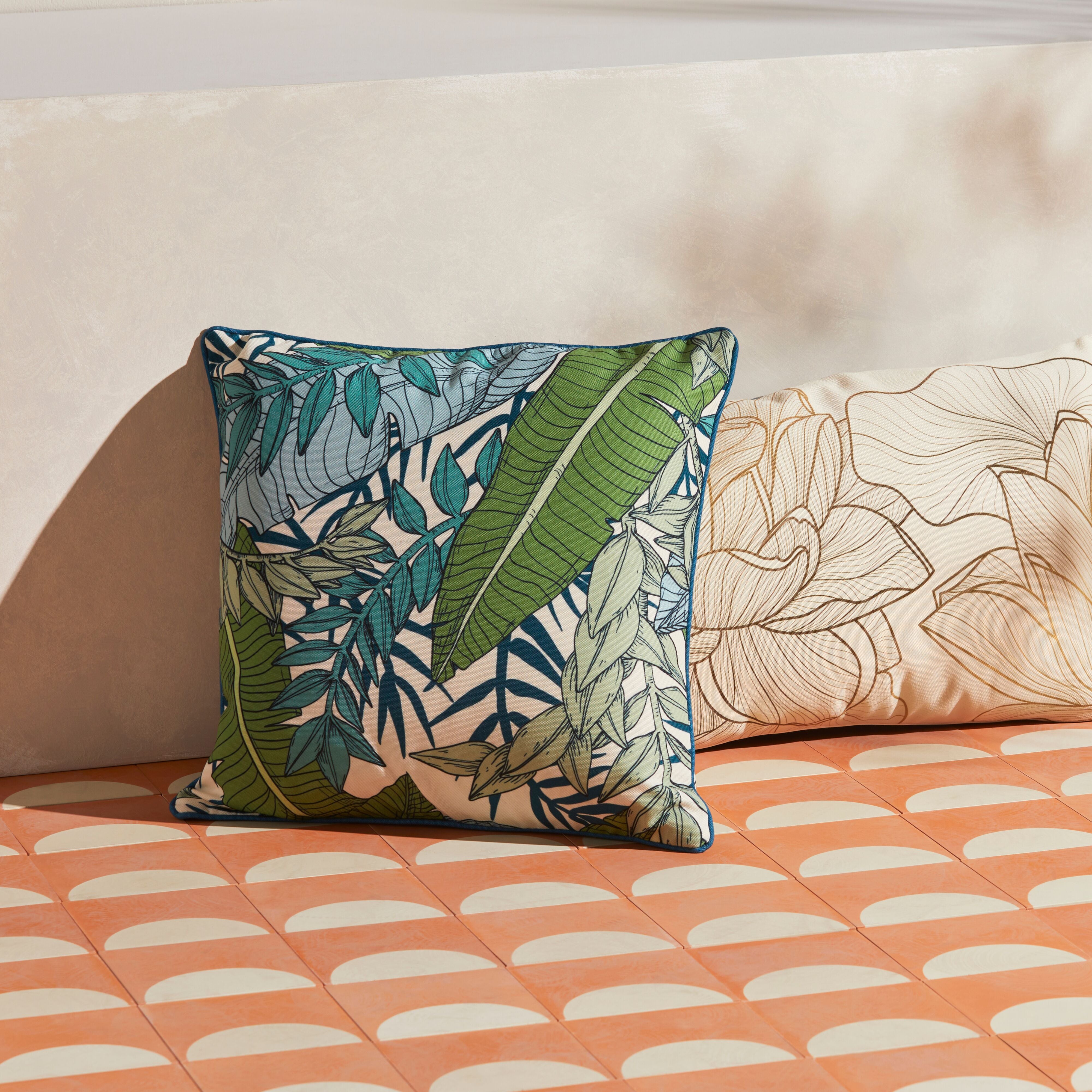 It's also UV stabilised, ensuring that the beautiful tropical print remains vibrant for years to come. The reversible design offers versatility, and the removable cover ensures easy care, so you can enjoy the outdoors without worry. Let this cushion be the perfect companion for your outdoor adventures or a cosy addition to your living room, reflecting your love for nature and style.