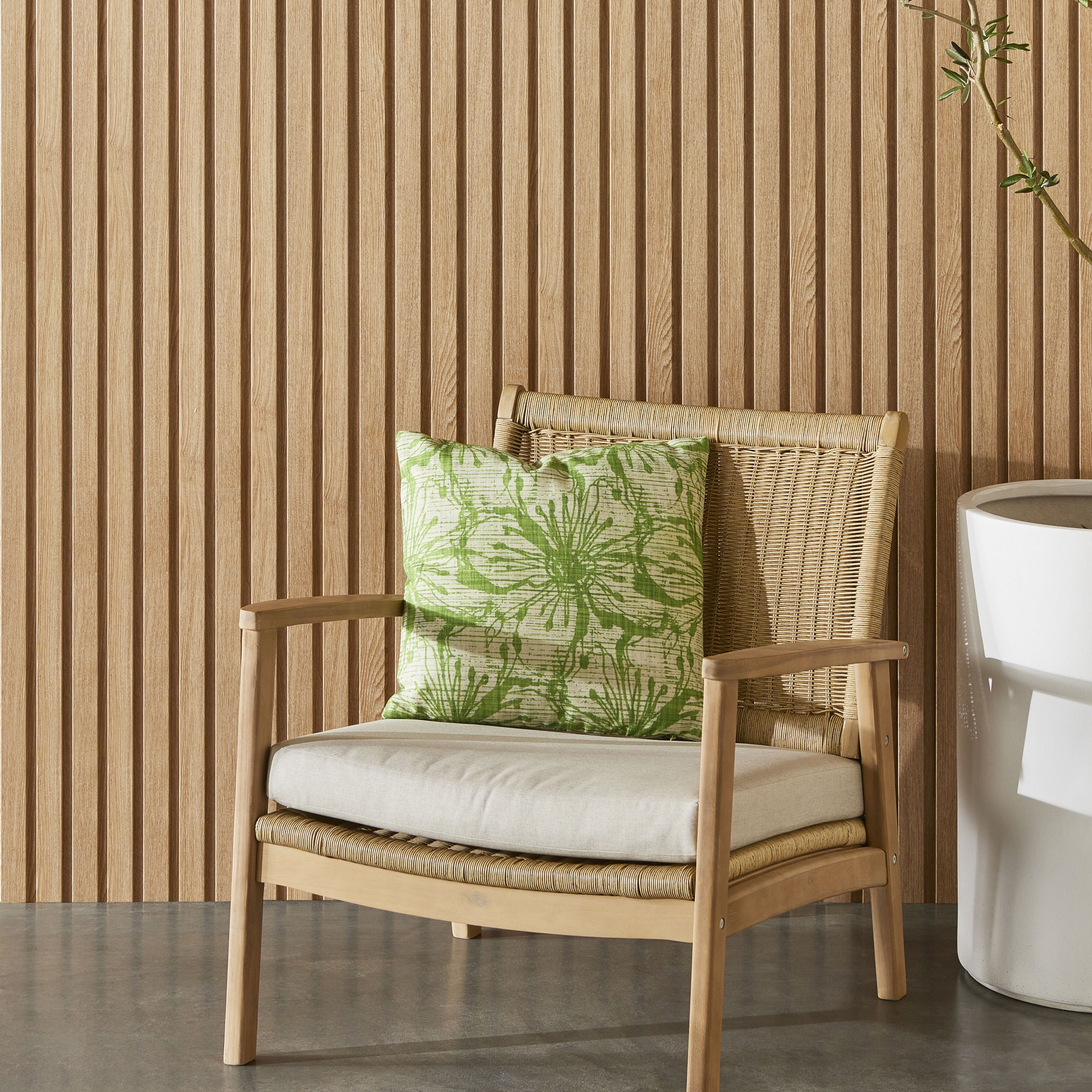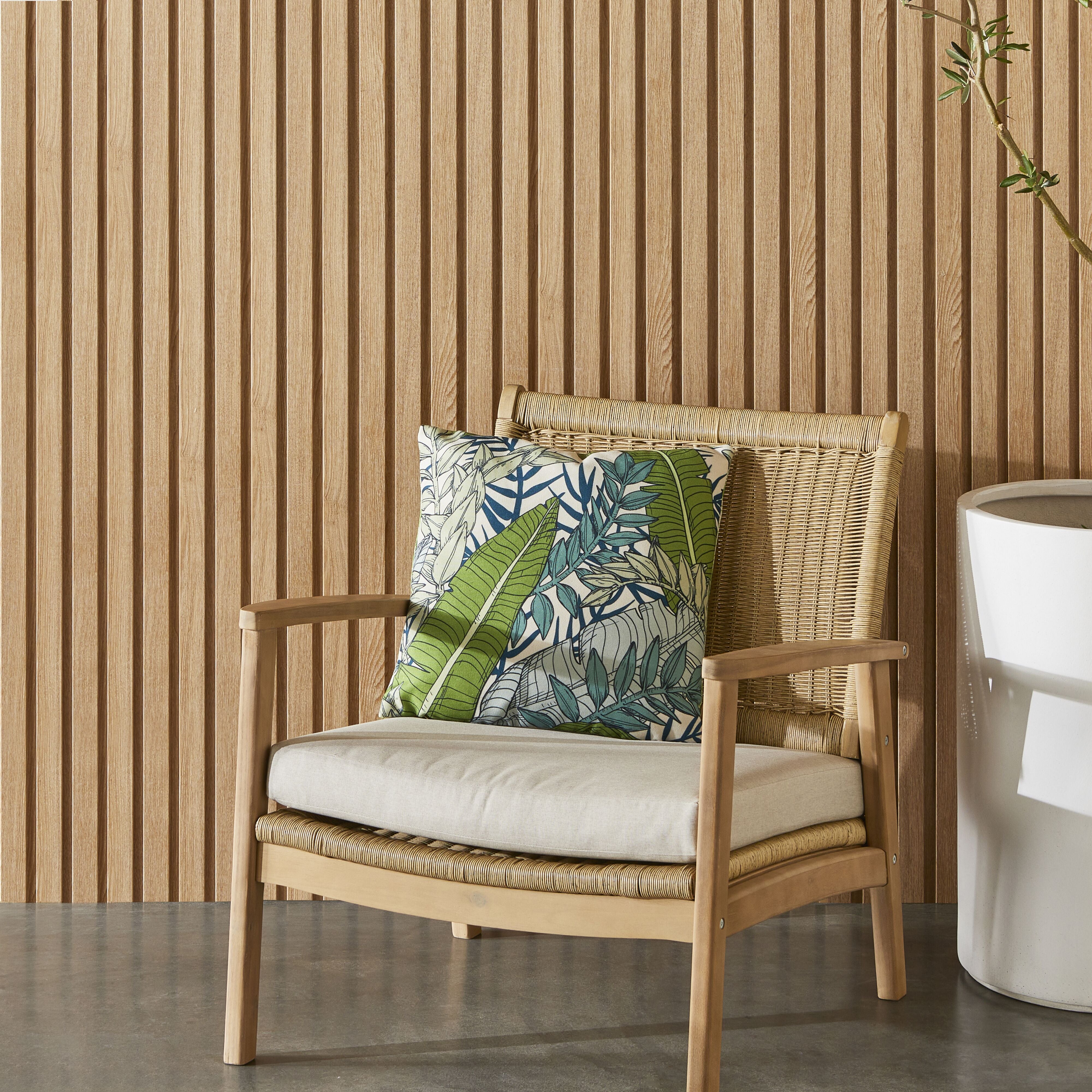 The Aruba Outdoor Indoor Fern Leaf Cushion 45x45cm brings a refreshing touch of nature into your home. Made from eco-friendly 100% recycled PET, this reversible cushion offers two charming designs. One side features a green and cream floral sketch, perfect for Hamptons or French provincial décor, while the other showcases a mixed leaves green pattern. Ideal for both indoor and outdoor spaces, it effortlessly complements the Aruba Green Flower Placemat, making it easy to refresh your living space without breaking the bank.