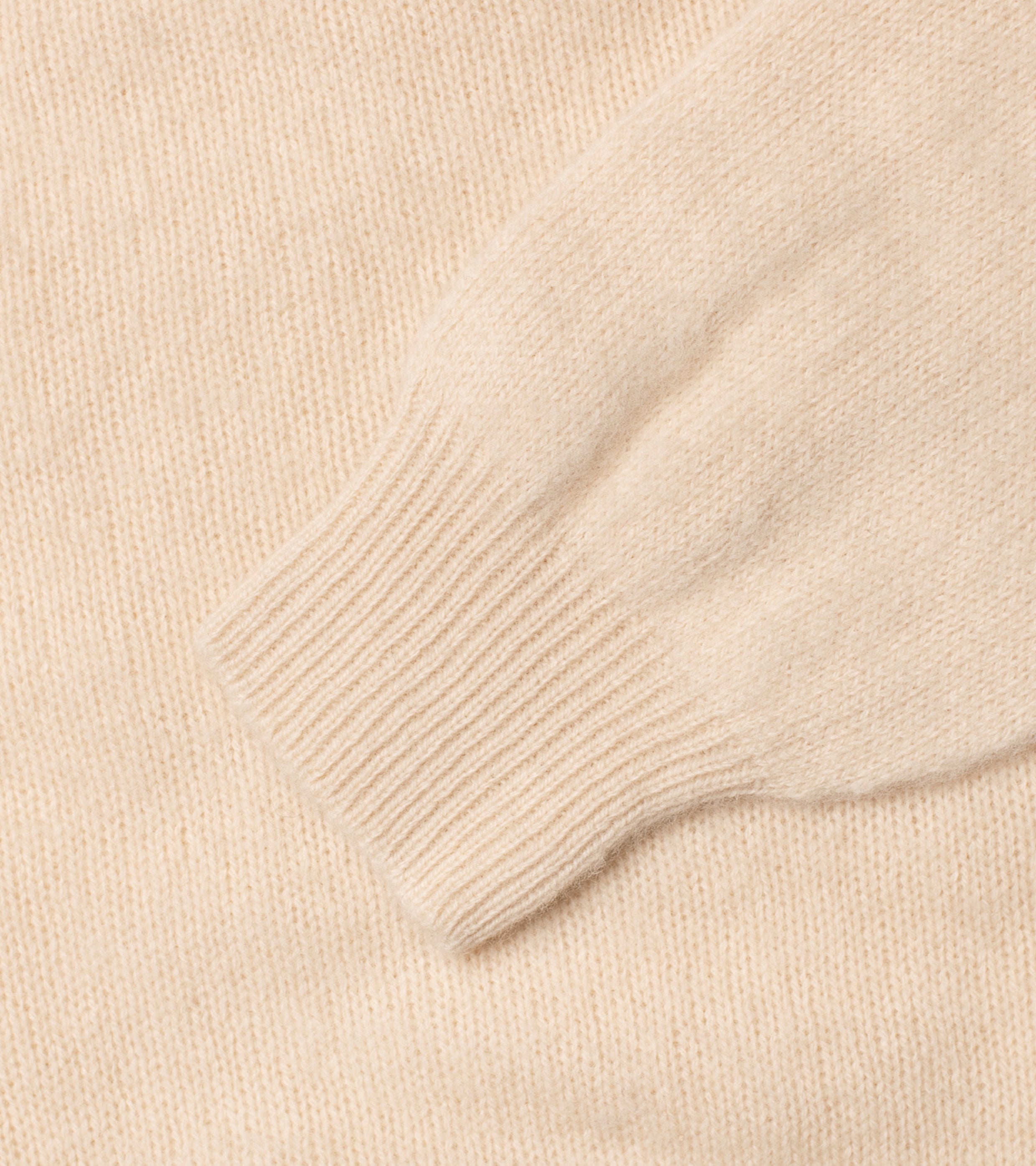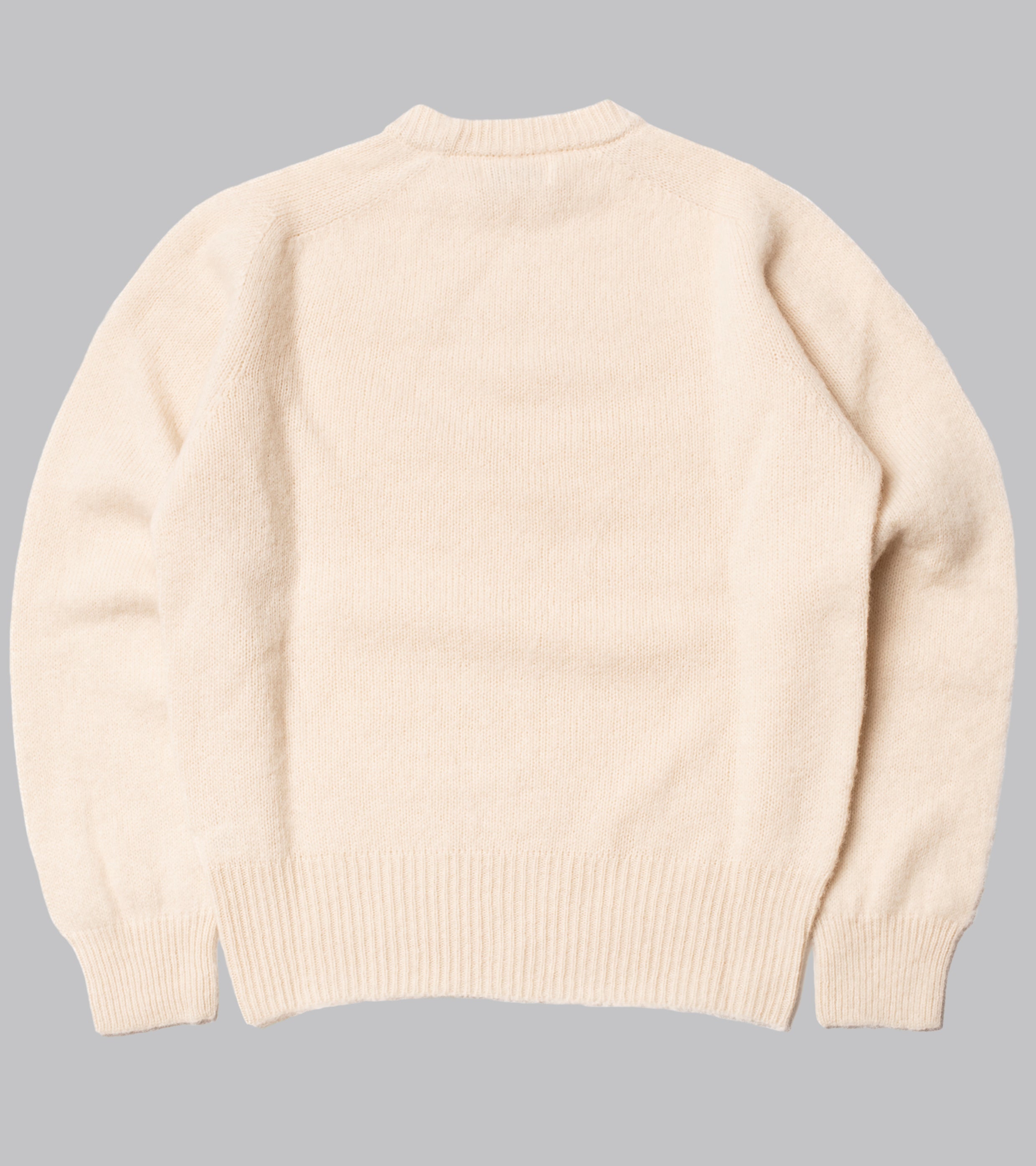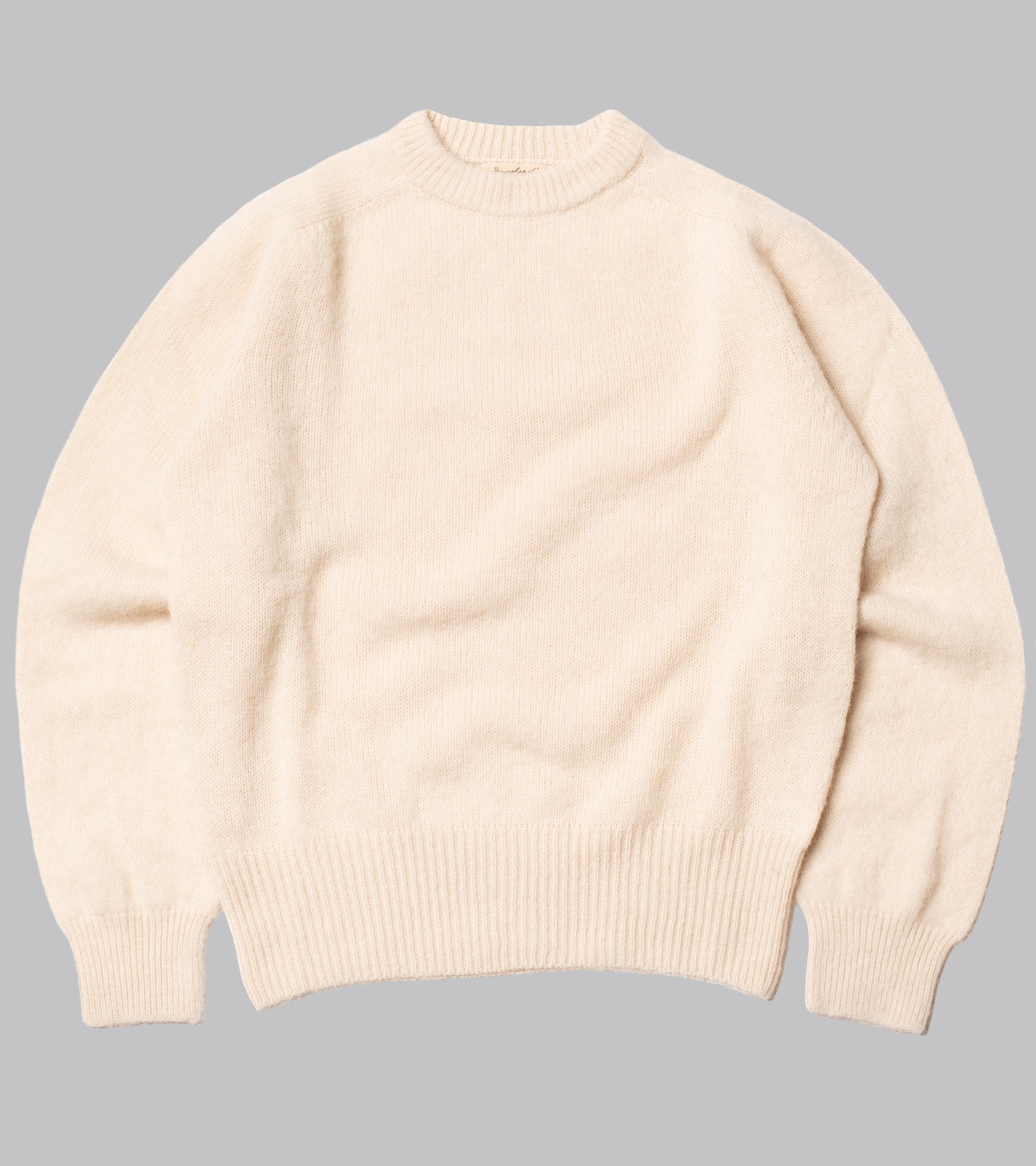 For us a brushed Shetland with its saddle shoulder and close sitting crew neck, is as applicable worn like a tee as it is a layering piece over Oxford cloth, as its shorter length allows. And knowing how well it tempers the most saturated of colours, we have lemon zest yellow, rosebud pink, cream and pecan to make the greyest of winter days a little more hopeful.