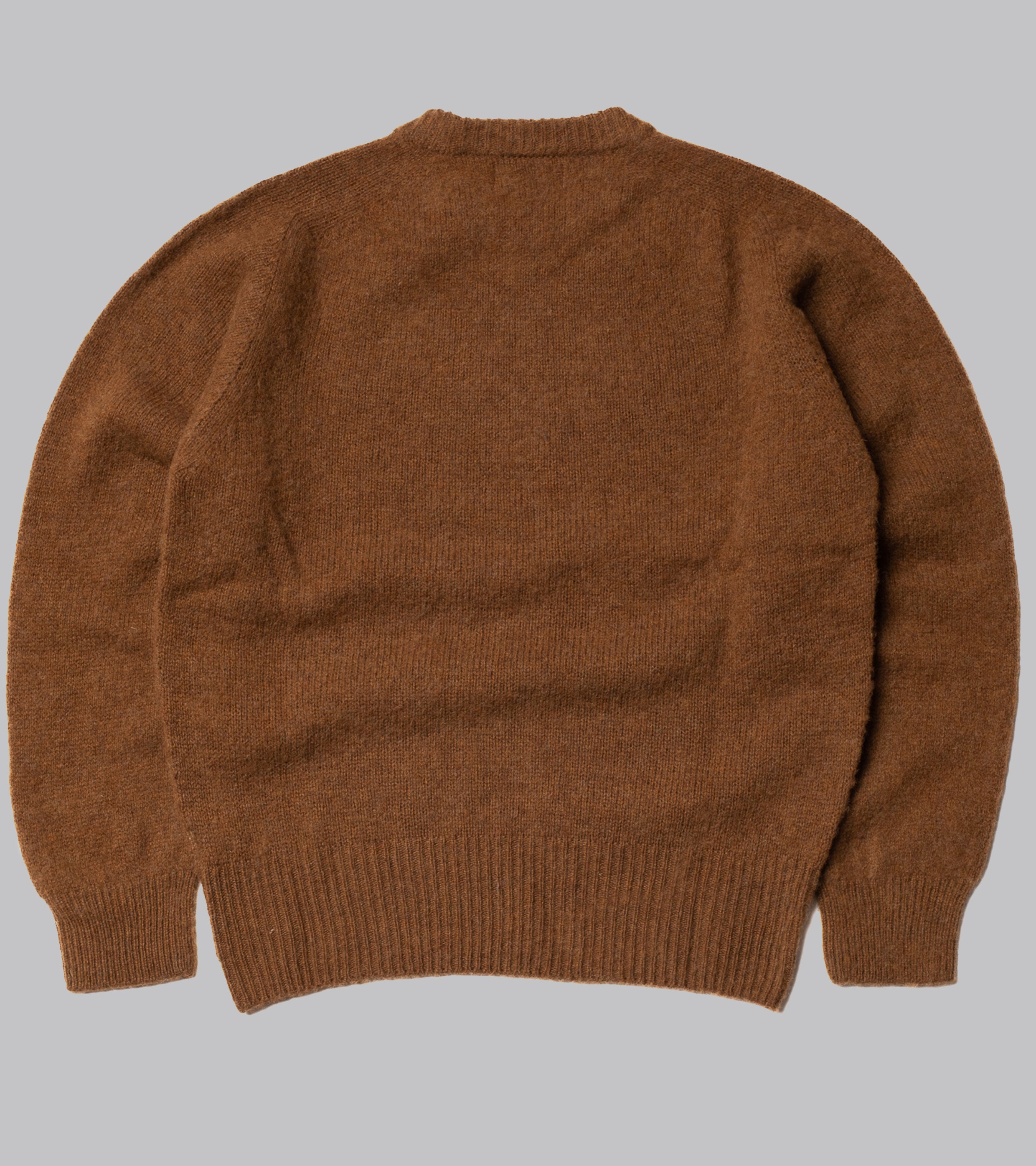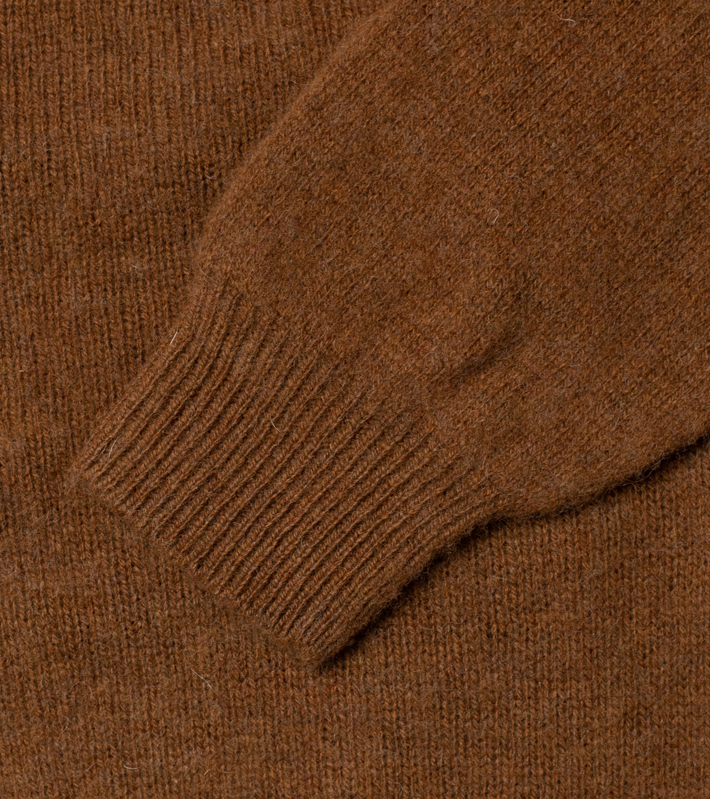 For us a brushed Shetland with its saddle shoulder and close sitting crew neck, is as applicable worn like a tee as it is a layering piece over Oxford cloth, as its shorter length allows. And knowing how well it tempers the most saturated of colours, we have lemon zest yellow, rosebud pink, cream and pecan to make the greyest of winter days a little more hopeful.