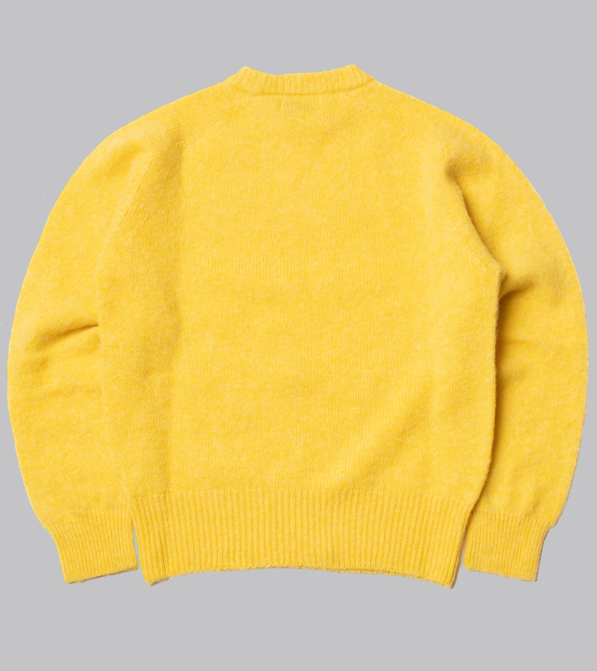 For us a brushed Shetland with its saddle shoulder and close sitting crew neck, is as applicable worn like a tee as it is a layering piece over Oxford cloth, as its shorter length allows. And knowing how well it tempers the most saturated of colours, we have lemon zest yellow, rosebud pink, cream and pecan to make the greyest of winter days a little more hopeful.